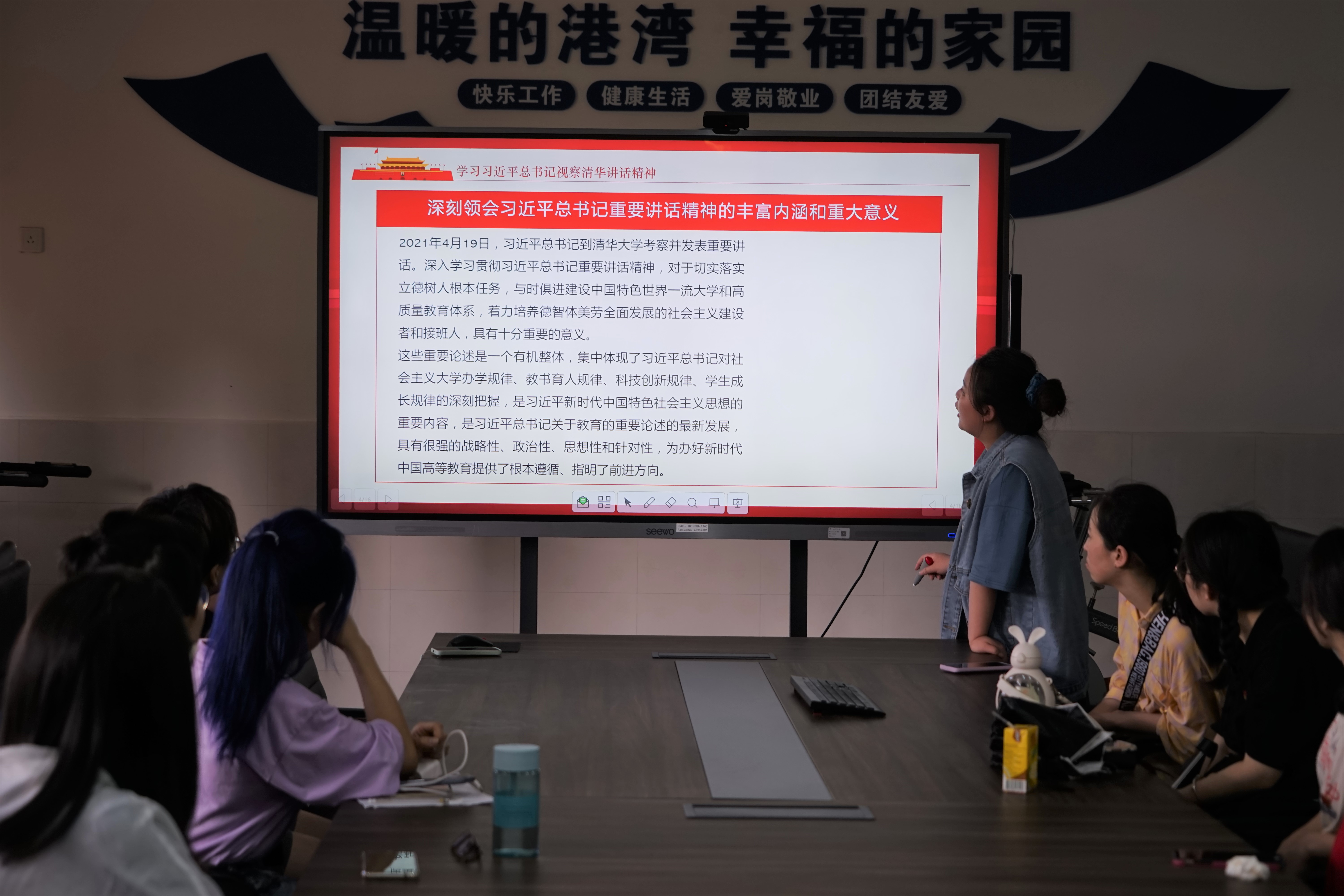 班会分为五项,第一项是学习总书记视察清华讲话精神,李同学认为,我们应当学习的,是习近平总书记对新时代高等教育发表的一系列讲话。这一系列讲话集中体现了习近平总书记对社会主义大学现况以及规律的深刻把握、应如何继续与时俱进、切实落实立德树人的重要论述,为办好新时代中国高等教育指明了方向。广大青年应肩负起历史使命,立大志、明大德、成大才、担大任,不忘国家的辛苦栽培,练就过硬的专业技术本领,为繁盛祖国的富强路添砖加瓦。