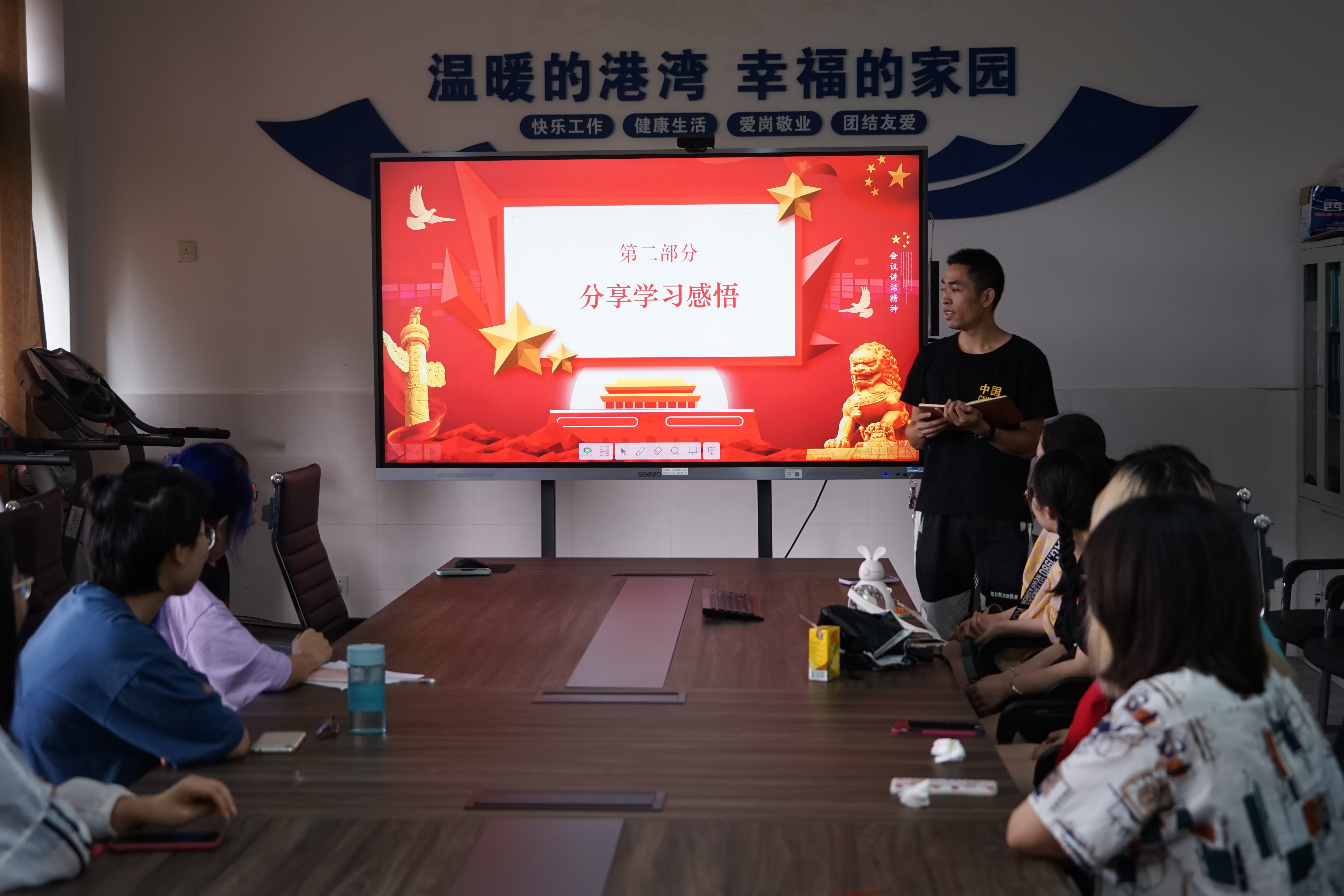 接下来由三位同学发表了自己的学习感悟。第一个同学认为老员工要正确的时间做正确的事,虽然我们大多数人不能像医生研救死扶伤,不能像军人保家卫国,但是做好自己,为自己负责,也算是为国家出一份力。第二个同学认为,作为青年学者,祖国为我们提供了优质的学习和科研条件,我们实在应当懂得羔羊跪乳、乌鸦反哺之情,全身心投入到学习、工作与科研中去。