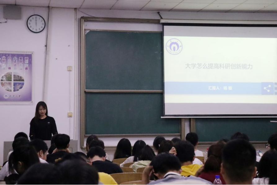 会议第二项,四位优秀毕业生党员代表分享了自己的学习和成长经验故事。环境工程专业四年成绩第一、保研至湖南大学的金楚佳同学分享了自己大学四年的学习方法与经验,提醒大家课堂时间尤为珍贵,课后要温故知新;保研排名综合第一、保研至华南理工大学的杨璇同学给大家分享在大学怎么提高科研创新能力,可以从哪里获取科研锻炼等等;考研至复旦大学的戴桂同学对她的考研之路进行了经验分享,她告诉学弟学妹们,不忘初心,脚踏实地,迎难而上是考研路上不可或缺的优秀品质;湖南省优秀毕业生薛钱蕾同学带来了“感时代律动,做时代青年”的主题分享,同学们对于大学怎么全面去提高综合素质能力感触颇深,感悟到了榜样的力量。